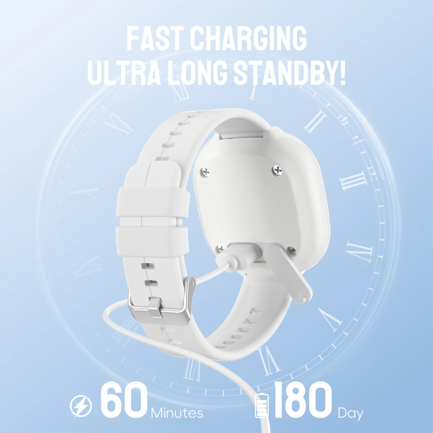 The SOS watch features ultra-long standby power. After a 60-minute charge, it can last up to 180 days, depending on usage frequency and connection settings.